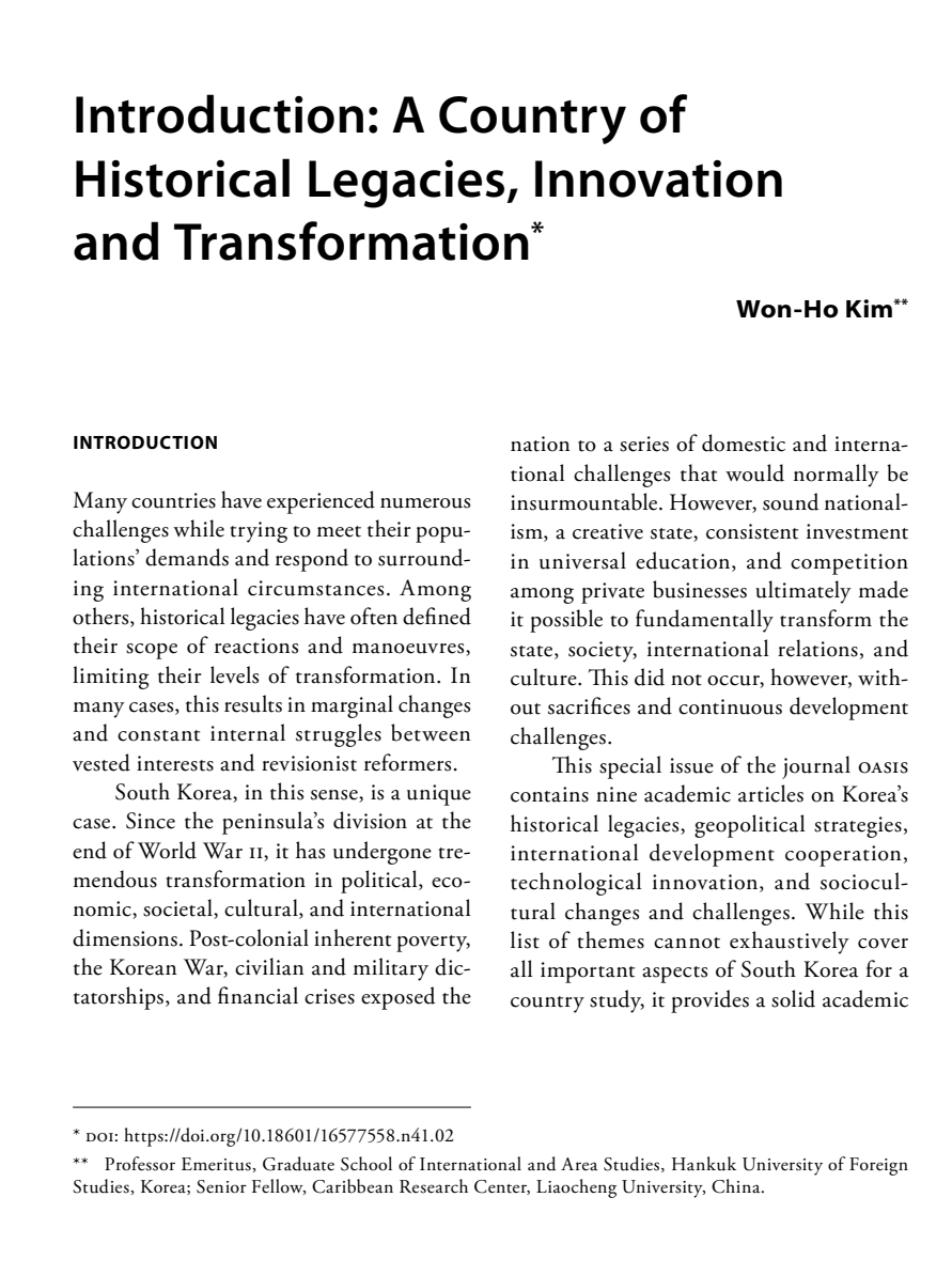 加勒比中心首席专家金元镐教授先后在国际知名期刊《绿洲》( OASIS )、《亚洲与全球经济》( Asia and the Global Economy )发表高水平论文。