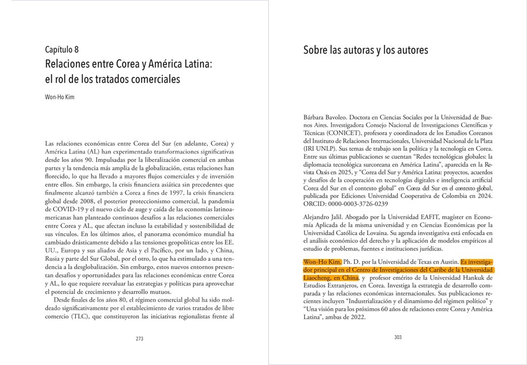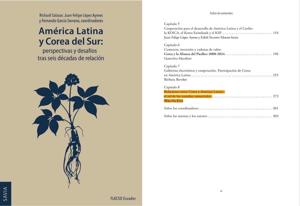 日前,加勒比研究中心首席专家金元镐教授发表《韩国与拉丁美洲的关系:贸易协定的作用》(Relaciones entre Corea y América Latina: el Rol de los Tratados Comerciales)一文,该文章被拉丁美洲社会科学院(FLACSO)出版文集《拉丁美洲与韩国:六十年关系历程中的前景与挑战》(América Latina y Corea del Sur: Perspectivas y Desafíos tras Seis Décadas de Relación)收录。